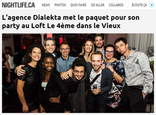 Établie à Montréal, Dialekta a su trouver sa place parmi les agences de marketing numérique les plus importantes au Canada. Et aujourd’hui, au fil des prestigieux prix du milieu, elle mise sur l’innovation et la créativité média pour consolider sa position de chef de file marketing au pays. Parmi ses mandats, elle accompagne et conseille Vidéotron, Novipro, Croix Bleue du Québec, Multi-Prêts Hypothèques, Point S, Techo-Bloc, Intact Assurances et Bell Média.