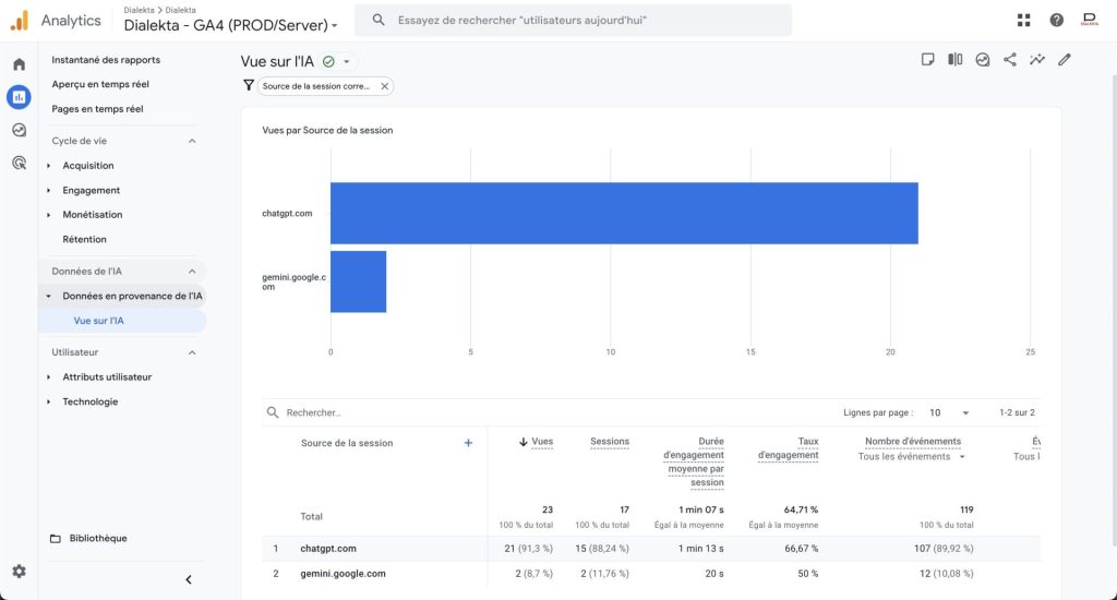 - Il est encore difficile de suivre le trafic sur et provenant de ces outils IA, certains le permettent (ChatGPT) d’autres non (les AI Overviews de Google ne sont pas encore visibles dans Google Search Console).