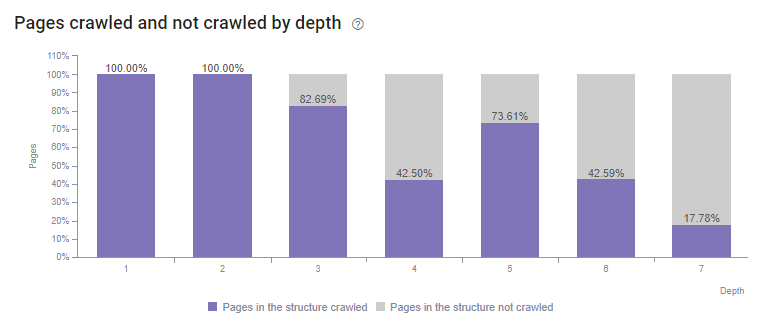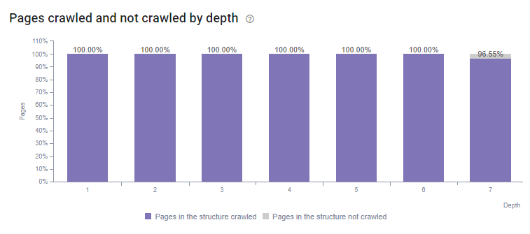 Grâce à l’analyse de logs fournie par Oncrawl, nous avons réussi à redistribuer le budget de crawl sur presque toutes les pages et répertoires du site en implémentant seulement deux actions. Suite à ces changements, nous pouvons aujourd’hui constater que toutes nos pages de niveau 1 à 6 sont toutes crawlées et que 96.5% de nos pages de niveau 7 sont également crawlées. Ce qui n’était pas le cas auparavant …
