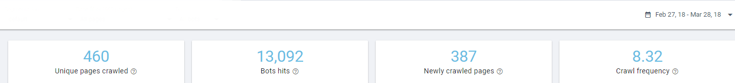 La seconde grande découverte, dont l’outil nous a fait part, concerne le passage des robots au sein des pages du site. Sur une période de 30 jours (27 février au 28 mars 2018), les robots de Google sont passés 13092 fois sur différentes pages du site, 460 pages uniques.